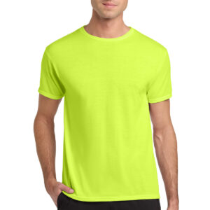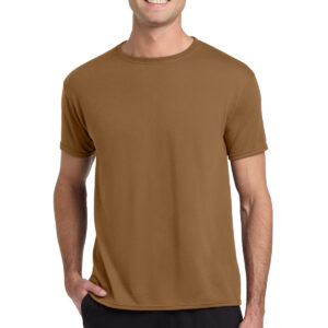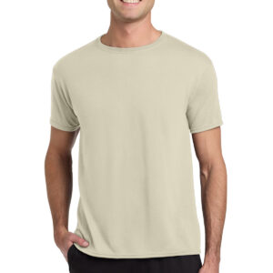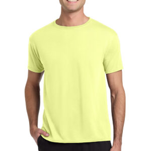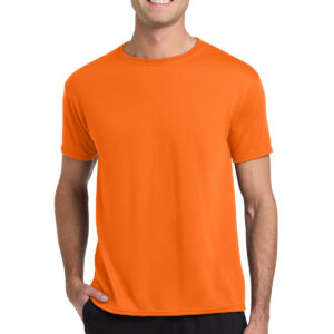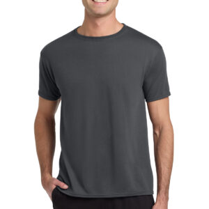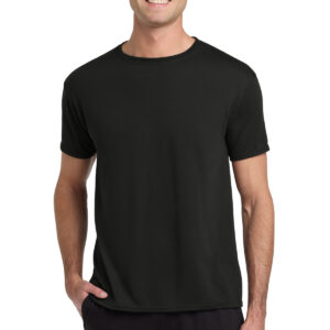 | 5.4-ounce, 100% polyester jersey Moisture-wicking with odor control Tear-away label 1×1 rib collar with clean neckline Double-needle coverstitching on front neck Shoulder-to-shoulder taping Double-needle sleeves and hem