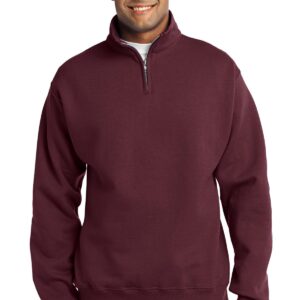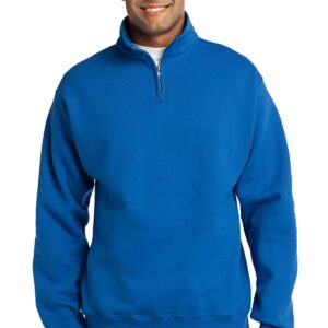 | 8-ounce, 50/50 cotton/poly NuBlend ® ; pill-resistant fleece High-stitch density for a smooth-printing canvas Stylish zip-through cadet collar Covered aluminum zipper for maximum print area Rib knit cuffs and waistband Double-needle coverstitching on armholes and waistband