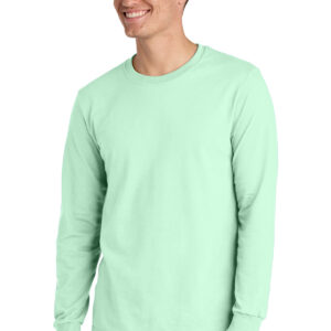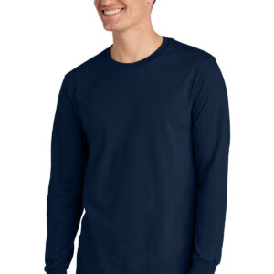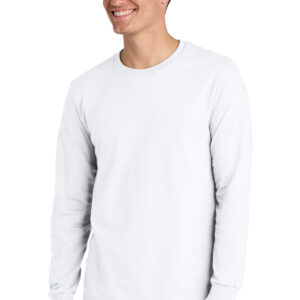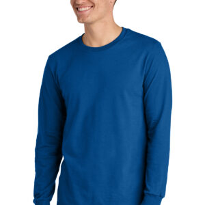 5.2-ounce, 50/50 combed ring spun cotton/poly Made with sustainably sourced USA-grown cotton Moisture-wicking Classic fit Tear-away label 1×1 rib knit collar and cuffs Shoulder to shoulder taping Double-needle sleeves and hem