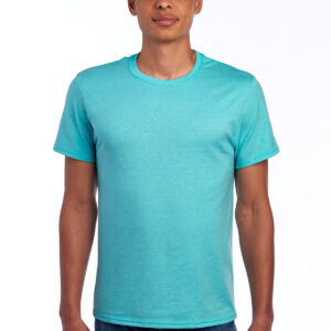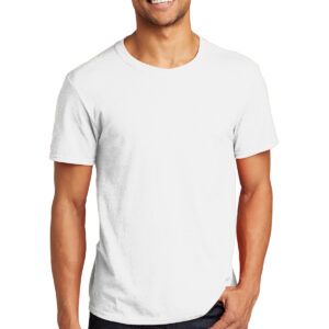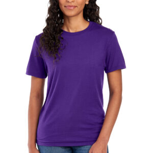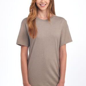 5.2-ounce, 50/50 combed ring spun cotton/poly 60/40 carded ring spun cotton/poly (Oxford) Made with sustainably sourced USA-grown cotton Moisture-wicking Classic fit Tear-away label Seamless 1×1 rib knit collar with clean neckline Shoulder to shoulder taping Double-needle sleeves and hem