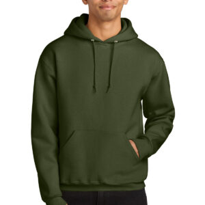 12-ounce, 69/31 cotton/polyester, 3-end fleece 65/35 cotton/polyester (Athletic Heather) 100% cotton face Made with sustainably sourced USA-grown cotton Durable, pill-resistant Double-needle coverstitching on neck, armholes and hem Two-ply hood with grommets Dyed-to-match tipped and knotted drawcords 1×1 rib knit cuffs and hem Front pouch pocket Tear-away label
