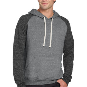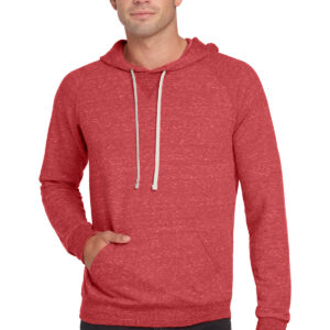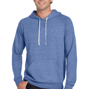 7.2-ounce, 66/34 poly/ring spun cotton French terry Classic fit Tear-away label V-notch detail Natural back neck tape Flat drawcord Raglan sleeves Kangaroo pocket Stretch collar, cuffs and hem