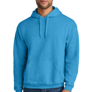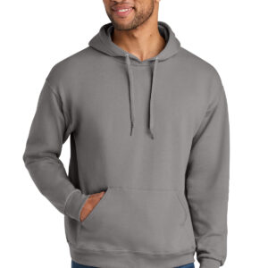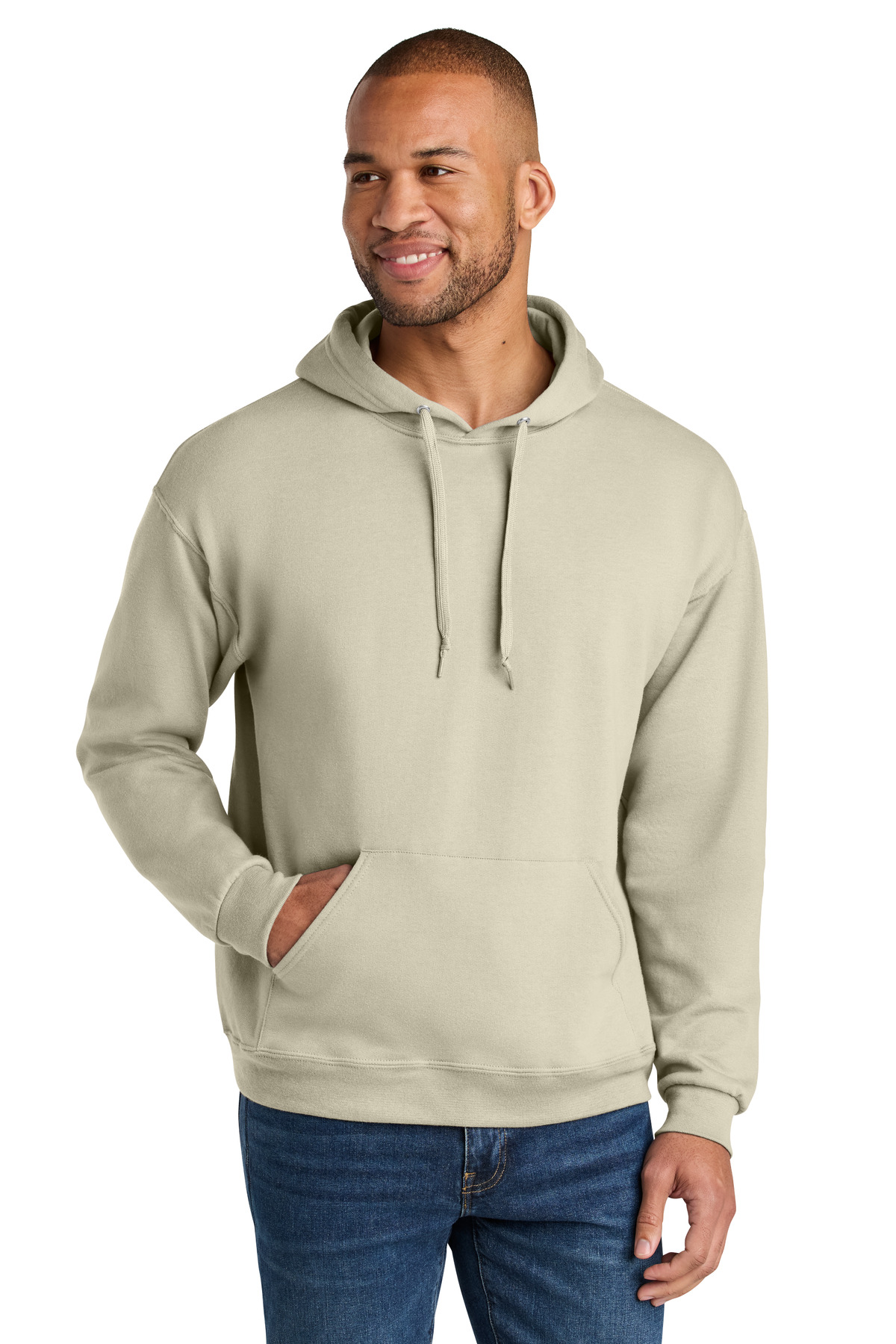 7.6-ounce, 60/40 CVC ring spun cotton/polyester fleece Made with sustainably sourced USA-grown cotton Moisture-wicking Wrinkle-release High stitch density for smooth printing surface Two-ply jersey-lined hood Dyed-to-match drawcords Double-needle coverstitching on neck, armholes and waistband 1×1 rib knit cuffs and hem Front pouch pocket Tear-away label