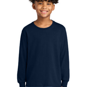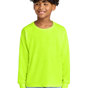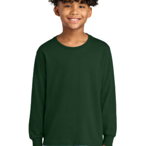 5.4-ounce, 50/50 cotton/polyester 47/53 cotton/polyester (Oxford) Made with sustainably sourced USA-grown cotton Moisture-wicking 1×1 rib knit collar and cuffs Shoulder-to-shoulder taping Double-needle hem Tear-away label