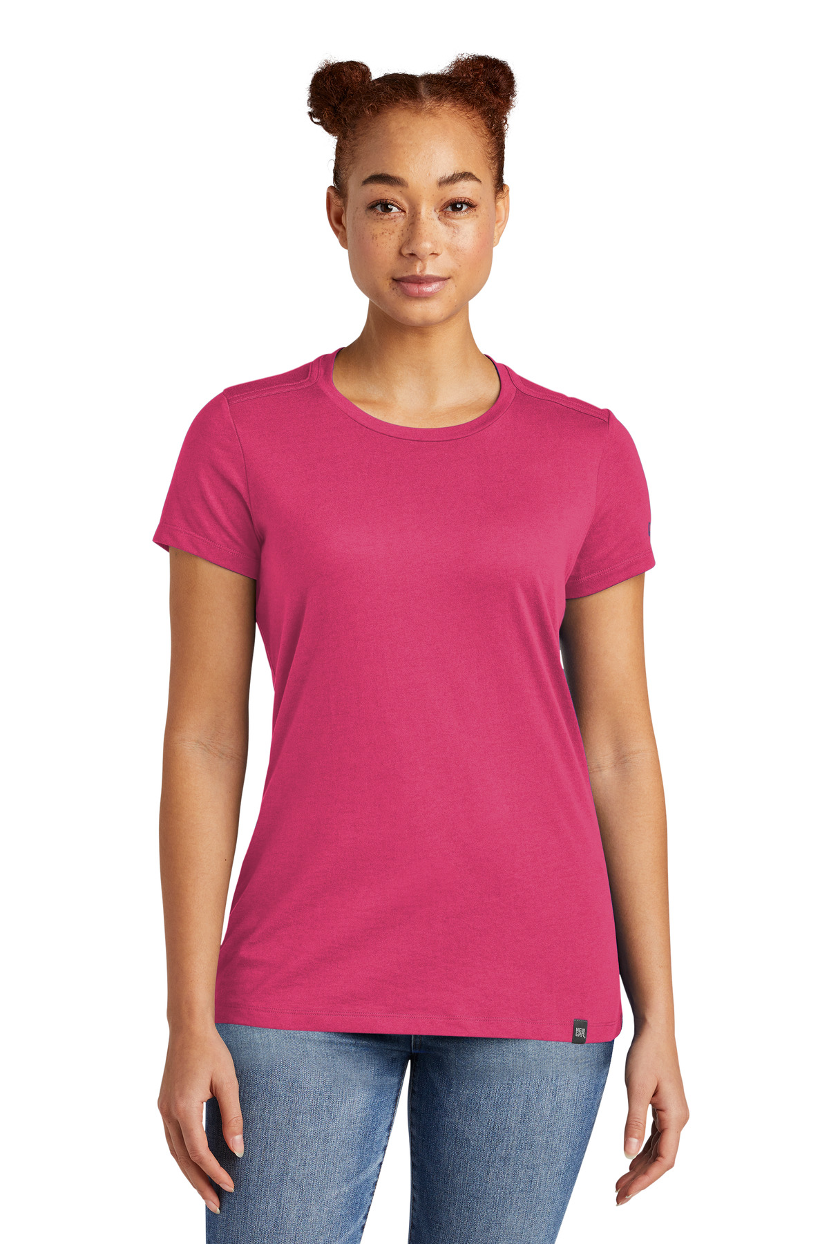 Our 60/40 blend creates an unbelievably soft tee with the comfort of a past era. 4.4-ounce, 60/40 ring spun combed cotton/poly, 30 singles Heat transfer label for tag-free comfort Reverse neck and shoulder taping Heat transfer New Era flag logo on left sleeve Woven New Era badge at hem