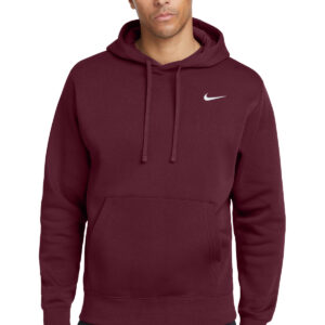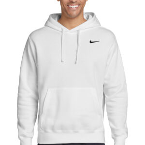 A closet staple, this hoodie combines classic Nike style with the soft comfort of brushed-back fleece. A jersey-lined, 3-panel hood with dyed-to-match drawstrings offers adjustable coverage. Rib knit cuffs and hem. Front pouch pocket. A contrast Swoosh design trademark is embroidered on left chest. Made of 8.2-ounce, 80/20 cotton/polyester with a 100% cotton hood lining.