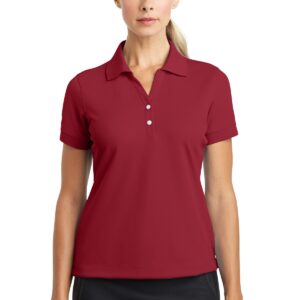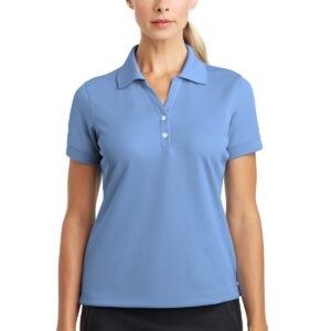 Nike is known for classic polos engineered for maximum comfort. The Dri-FIT fabric technology delivers superior moisture management, while the stitch-trimmed shoulder panels and gussets make a distinctive difference. Flat knit collar. Tailored for a feminine fit with a two-button Y-placket and flat knit cuffs. Pearlized buttons are selected to complement the shirt color. The contrast Swoosh design trademark is embroidered on the left sleeve. Made of 4.7-ounce, 100% polyester Dri-FIT fabric.