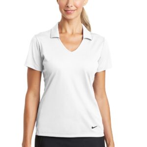 Designed for the ultimate in performance, this polo has a soft drape and a vertical mesh texture. Dri-FIT moisture management technology provides breathable comfort during and after play. Tailored for a feminine fit with a Johnny collar. A contrast Swoosh design trademark is embroidered on the left hem. Made of 4.4-ounce, 100% polyester Dri-FIT fabric.