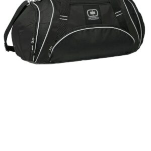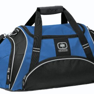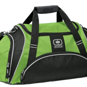 This go-to travel and workout bag delivers bold colors, plenty of room and an athletic design that fits inside most gym lockers.| 420D dobby poly Large main compartment Side shoe pocket Front-faced zippered and secondary side storage pockets Detachable, adjustable, padded shoulder strap Custom-molded interlocking handle Dimensions: 13’h x 24’w x 12’d Capacity: 3,744 cu.in./41L Weight: 1.6 lbs./0.7kg Note: Bags not intended for use by children 12 and under. Includes a California Prop 65 and social responsibility hangtag.