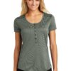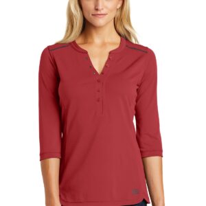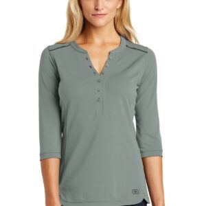 This henley fuses performance with dynamic details for a look that’s uniquely OGIO. 5.9-ounce, 96/4 poly/spandex pique with stay-cool wicking technology OGIO heat transfer label for tag-free comfort Self-fabric collar Set-in, open hem sleeves 6-button welded placket with black reflective, welded button holes and dyed-to-match, debossed O buttons Front and back princess seams Black reflective welding on front shoulders Black reflective O heat transfer at left hem Tulip-shaped hem