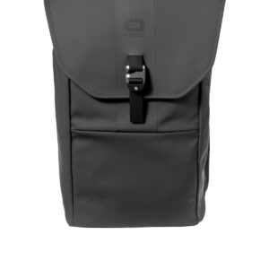 Rubberized 600D poly face-coated PU Rolltop folds under top cover with a heavy-duty metal hook closure Water-resistant, clear-coated mesh pocket under top cover Two side zips for quick access to main compartment and laptop sleeve Large center storage area Deluxe organization panel Adjustable sternum strap Padded straps with daisy chain details Integrated luggage trolley pocket on back Laptop sleeve: 20’h x 11’w; fits most 13′ laptops Dimensions: 20’h x 12’w x 5.9’d Capacity: 1,373 cu.in./22.5 L Weight: 2.49 lbs./1.02 kg Note: Bags not intended for use by children 12 and under.