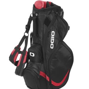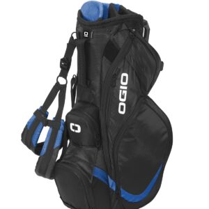 This stand bag is truly a vision of OGIO quality and innovation with two detachable pockets for easy embellishment. 8-way Woode ™ top Triple Triangle suspension shoulder strap system 6 zippered pockets fleece-lined valuables pocket walking-accessible water bottle holster hook and loop glove patch rain hood large detachable side pocket and ball pocket for easy decoration