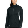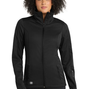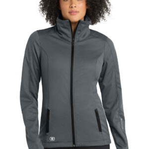 WATER-RESISTANT WIND-RESISTANT TONAL EMBOSSED O PATTERN REFLECTIVE DETAILS | 100% poly stretch shell bonded to textured grid fleece with a laminated film insert for wind and water resistance 5,000MM fabric waterproof rating 5,000G/M2 fabric breathability rating Waterproof center front zipper Articulated shaping for ease of movement Reflective OGIO heat transfer label for tag-free comfort Zip-through collar Embossed O pattern at back Reflective stacked O heat transfers at back Lower front zippered pockets with textured welding details Set-in sleeves with shaped cuffs Reflective O heat transfer at left sleeve Slight drop tail hem with reflective O heat transfer at front right hem