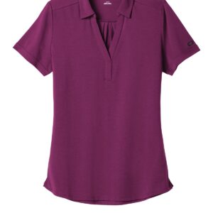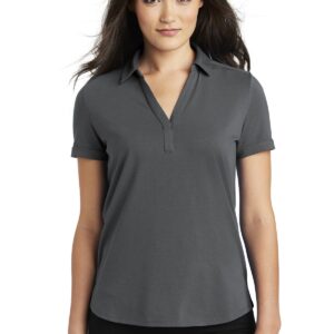 OGIO sets no limits in this easy-moving, moisture-wicking style that features plenty of stretch. 5.6-ounce, 58/38/4 cotton/poly/spandex jersey with stay-cool wicking technology OGIO heat transfer label for tag-free comfort Self-fabric collar with collar stand Open Y-neck placket Back center pleat Set-on, cuffed sleeves Flat matte silicone O heat transfer on left sleeve