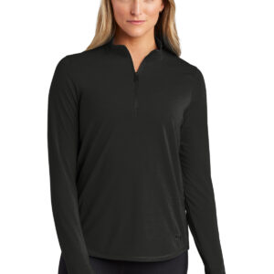 Set yourself in motion with this elevated, easy moving 1/4-zip that feels lux and performs with pill and snag resistance-whether you’re on the job or on the go. 6.5-ounce, 84/10/6 poly/rayon/spandex with stay-cool wicking technology UPF rating of 30 OGIO heat transfer label for tag-free comfort Black reverse coil zipper with black metal zipper pull Invisible side seam zippered valuables pocket with cord zipper pull and silicone-dipped ends Thumbholes Embroidered dyed-to-match O logo icon at left hem Curved hem