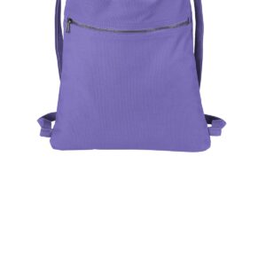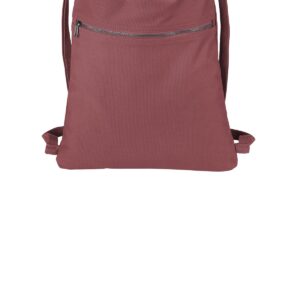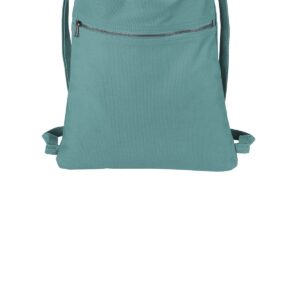 12-ounce, 100% washed cotton Dyed-to-match webbing cinch straps Metal zippered front pocket Dimensions: 17.5’h x 14’w; Approx. 245 cubic inches Note: Bags not intended for use by children 12 and under.