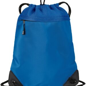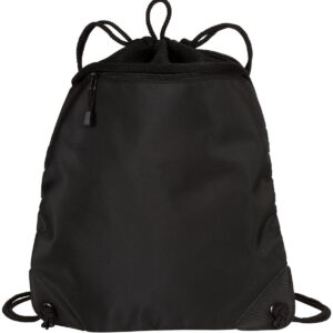 Just right for the beach or by the pool, this large cinch pack will easily hold shoes or a change of clothes. | 100% polyester microfiber on the front, 100% polyester air mesh above pocket and on the back Breathable air mesh above pocket and on back Front zippered pocket Drawcord closure Reinforced bottom grommets Dimensions: 18’h x 14.5’w; Approx. 732 cubic inches Note: Bags not intended for use by children 12 and under. Includes a California Prop 65 and social responsibility hangtag.