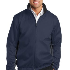 With colorblock side panels and a subtle grid texture, this contemporary jacket protects against wind and rain. A jersey lining adds warmth to this exceptionally priced, wear-anywhere style. | 100% shadow grid polyester dobby shell Jersey lining Packable zip-in hood with contrast zipper Cadet collar Elastic cuffs Port Pocket™ for easy embroidery access Elastic hem