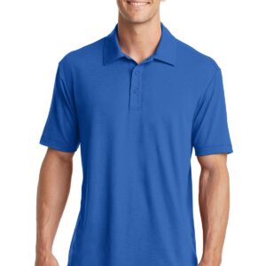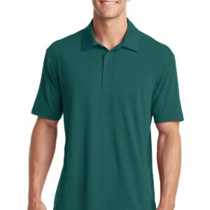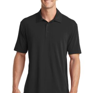 A polyester polo that performs with the comfortable feel of cotton and a touch of stretch. Just right for the workday or after hours, this sophisticated style has subtle texture, manages moisture, keeps you fresher with odor-controlling technology and feels great against your skin. | 5.8-ounce, 95/5 poly/spandex jersey Self-fabric collar Tag-free label 3-button placket with dyed-to-match buttons Open hem sleeves