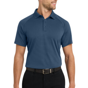 Cross over from your standard polo to this moisture-wicking performance style with its subtle horizontal rib texture and exceptional drape. Sport-inspired raglan sleeves allow easy movement. | 5-ounce, 100% polyester Flat knit collar 3-button placket with dyed-to-match buttons Due to the nature of 100% polyester performance fabrics, special care must be taken throughout the printing process.