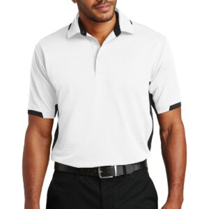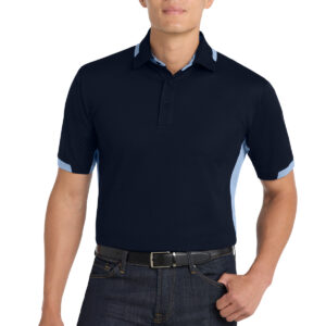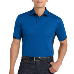 We took the Dry Zone moisture-wicking performance from our solid ottoman polos and added colorblocking on the collar, sides and sleeves. Colorfast and snag-resistant, this hardworking shirt is ready to do business. | 5.3-ounce, 100% polyester Flat knit collar 3-button placket Dyed-to-match buttons Open hem sleeves with contrasting rib knit inset Rental-friendly Due to the nature of 100% polyester performance fabrics, special care must be taken throughout the printing process.