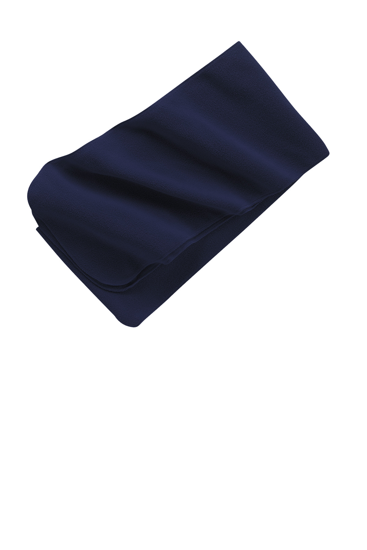 This soft and warm scarf offers extra coverage. | 7.4-ounce, 100% polyester fleece Dyed-to-match overlock stitch Dimensions: 80′ x 10′