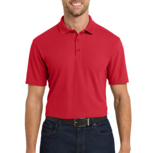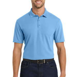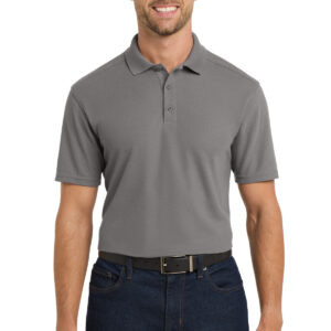 Our value-priced EZPerformance Pique Polos make uniforming easy. These versatile, moisture-wicking styles are remarkably softÿ¿ÿ¿plus they color-coordinate with our popular EZCotton ® Polos. 6.2-ounce, 100% spun polyester pique 7.4-ounce, 100% spun polyester pique (White) Easy care Flat knit collar Heat transfer label for tag-free comfort 3-button placket with dyed-to-match buttons Open hem sleeves