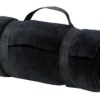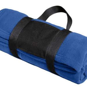 This soft fleece blanket–perfect for taking the chill off–comes with a strap with ample room for a logo.| 15-ounce linear yard, 100% polyester Fully hemmed Web carrying strap with easy decoration panel Dimensions: 50′ x 60′