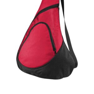 Honeycomb texture adds interest to this budget-minded sling pack. 600 denier polyester, 420 denier honeycomb polyester contrast Front zippered pocket Main compartment with zippered side entry Dimensions: 17’h x 13’w x 6’d; Approx. 1,326 cubic inches Note: Bags not intended for use by children 12 and under. SanMar bags manufactured prior to August 31, 2018 include a Social Responsibility and Prop 65 hangtag. SanMar bags manufactured after August 31, 2018 will not include a hangtag.