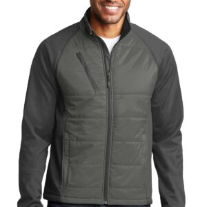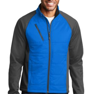 Quilted front and back panels join a wind-resistant, water-resistant soft shell to make the Hybrid a trend-right stretch performance jacket with urban edge. | 100% polyester knit shell bonded to a water-resistant film insert and a 100% polyester microfleece lining 100% nylon woven overlays 1000MM fabric waterproof rating 1000G/M2 fabric breathability rating Reverse coil zippers Interior storm flap with chin guard Zippered right chest pocket Front zippered pockets Port Pocket ™ for decoration access Binding at cuffs Open hem with adjustable locking drawcords