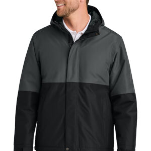 Primed for the slopes or any cold-weather commute, this storm-ready 8K/5K jacket has a compelling colorblock design and features fleece in the upper body for extra warmth. 100% polyester ripstop shell 2.3-ounce, 100% polyester polyfill insulation (upper body) 2.9-ounce, 100% polyester polyfill insulation (hood, lower body and sleeves) Fabric waterproof rating: 8000MM Fabric breathability rating: 5000G/M2 Adjustable hood with locking drawcords Full-length interior storm flap Interior chest pocket under storm flap Full-length exterior storm flap with snap and hook and loop closures Adjustable cuffs with hook and loop closures Zippered hand pockets Adjustable locking drawcord at hem Port Pocket ™ for decoration access Water protection method: Durable water-repellent (DWR) finish, fully seam-sealed