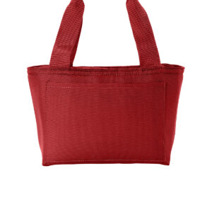 600D x 450D polyester Zippered, insulated main compartment Front slip pocket Dyed-to-match web handles Dimensions: 7.75’h x 9.5’w x 5’d Capacity: 335.6 cu. in./5.5 L Weight: 0.26 lbs./0.12 kg Note: Bags not intended for use by children 12 and under.