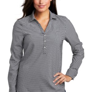 Comfort and performance meet classic corporate style. Odor-fighting, wrinkle-resistant and moisture-wicking, these looks have just the right amount of stretch to keep up with a busy day. 3.7-ounce, 93/7 poly/spandex Odor-fighting Wrinkle-resistant Moisture-wicking Open collar and neckline Longer tunic length Pearlized buttons Rounded adjustable cuffs Curved hem