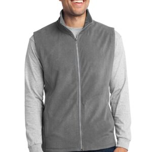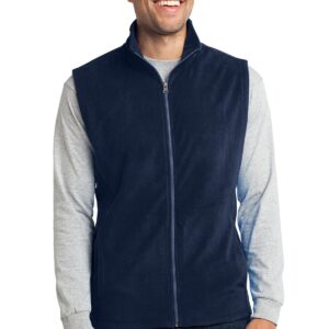 Add a layer of warmth with our extra soft, cozy microfleece vest. Lightweight, with an anti-pill finish, this cool-weather essential is also easy on the budget. | 4.6-ounce, 100% polyester microfleece Clear coil zipper with dyed-to-match chain stitching and taping Non-zippered front pockets Open hem
