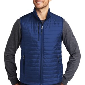 Staying warm while on the go has never been easier with our Packable Puffy Vests. Thanks to a water-repellent fabric coating and finish, you’ll remain comfortable no matter where your day takes you. 100% polyester shell and lining 2.4-ounce, 100% polyfill insulation Interior storm flap with chin guard Reverse coil zippers Zippered chest pocket Front zippered pockets with rubber-wrapped zipper pulls Adjustable locking drawcord at hem Port Pocket ™ for decoration access Dyed-to-match drawstring carrying pouch included