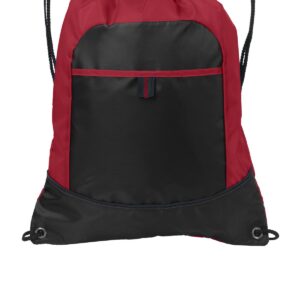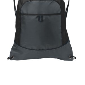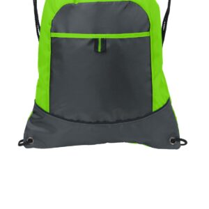 This colorful cinch pack is a tremendous value and it features a front storage pocket for easy decoration. | 210 denier polyester Drawcord closure Front slip pocket Dimensions: 17.25’h x 14’w; Approx. 610 cubic inches Note: Bags not intended for use by children 12 and under. Includes a California Prop 65 and social responsibility hangtag.