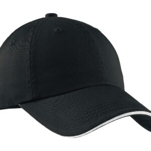 This popular style, with its contrast sandwich bill, has an exceptionally soft feel and appearance—thanks to an garment wash. | Fabric: 100% garment-washed cotton twill Structure: Unstructured Profile: Low Closure: Hook and loop