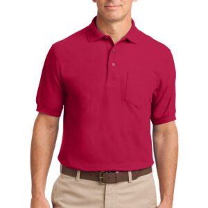 Our popular Silk Touch ™ polo—enhanced with a left chest pocket.| 5-ounce, 65/35 poly/cotton pique Flat knit collar and cuffs Metal buttons with dyed-to-match plastic rims Side vents
