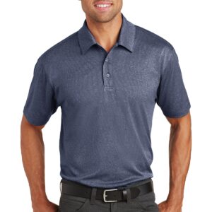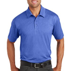 Breathe new life into your office look with this active-inspired, heathered performance polo that wicks moisture and resists snags. | 4.5-ounce, 100% polyester Self-fabric collar 3-button placket with dyed-to-match buttons Open hem sleeves Side vents Rental-friendly Due to the nature of 100% polyester performance fabrics, special care must be taken throughout the printing process.