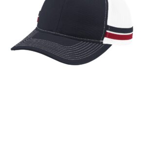 Fabric: 100% cotton twill front panels and stripes; 100% polyester mesh mid and back panels Structure: Structured Profile: Mid Closure: 7-position adjustable snapback