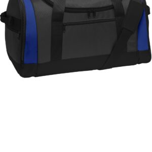 Made to travel, this sporty duffel has a large easy-access main compartment and two separate end pockets for shoes and clothes. | 1,680 denier dobby and 600 denier polyester Extra large main compartment with D-shaped zippered entry Large end pocket and shoe bag end pocket Two flat zippered pockets on each end for smaller items Zippered front pocket Detachable, adjustable, padded shoulder strap Padded carrying handle Removable bottom board for added load support Dimensions:13′ h x 24.5′ w x 11.5′ d; Approx. 3,663 cubic inches Note: Bags not intended for use by children 12 and under. Includes a California Prop 65 and social responsibility hangtag.