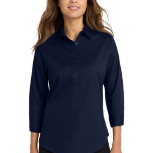 This comfortable wash-and-wear shirt is indispensable for the workday. Wrinkle resistance makes this shirt a cut above the competition so you and your staff can be, too. | 4.5-ounce, 55/45 cotton/poly Traditional, relaxed look Open collar Dyed-to-match buttons