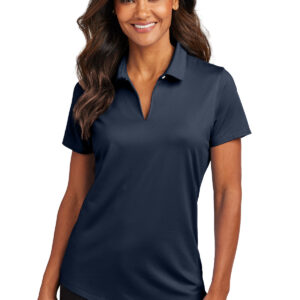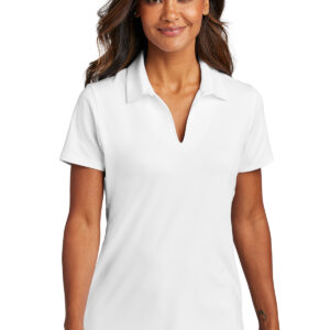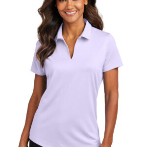 A polished look is easily achieved in this elevated style that combines professionalism with snag- and odor-resistance, plus moisture wicking performance. 5.6-ounce, 94/6 poly/spandex jersey Snag-resistant Stretch Moisture-wicking Odor-resistant Easy Care Self-fabric collar with collar stand Single-button keyhole neck Curved drop tail hem Tag-free label
