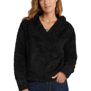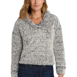 Ultra-soft meets cozy warmth in this layerable faux shearling fleece hoodie. Ideal for cooler days, itâ¿¿s comfortable, versatile and designed to fend off the chill in style. 6.8-ounce, 100% polyester faux shearling fleece Three-panel hood Drop shoulder Open cuffs and hem