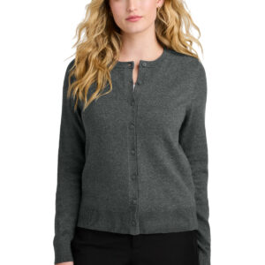 Blending professionalism with supreme comfort, this beautiful tri-blend sweater is an exceptional addition to any work wardrobe. 56/29/15 cotton/nylon/acrylic Fully-fashioned seams Machine washable 1×1 rib knit collar, cuffs and hem Dyed-to-match faux horn buttons Hits at the hip