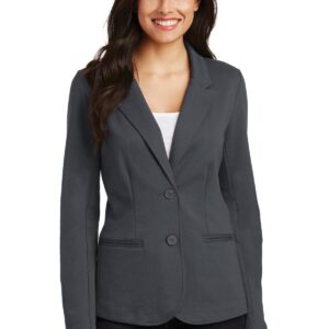 Mix it up at the office or after work with this versatile, modern blazer. Designed for layering comfort, this easy-to-wear, deconstructed style can go from refined to casual and resist wrinkles all day long.| 8.5-ounce, 52/48 cotton/poly ponte knit Peak lapel Front and back darts Welt pockets 2-button front closure Back vent