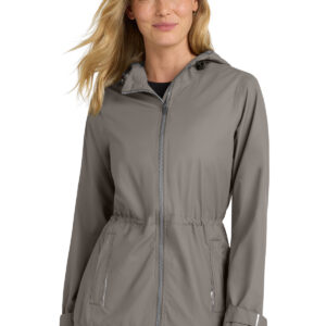 We reinvented our classic rain jacket with this critically seam-sealed slicker that features water resistance, a soft hand feel and reflective details for enhanced visibility and a modern look.| 100% PU-coated polyester 100% polyester mesh-lined body and hood 100% polyester-lined sleeves 1500MM fabric waterproof rating Attached hood with adjustable locking drawcord Molded zipper Grommets for breathability under arms Longer length with adjustable locking drawcord waist Adjustable self-fabric tab cuffs with hook and loop closures and reflective detail Front zippered pockets with reflective detail Port Pocket ™ for decoration access Open hem with adjustable locking drawcord Reflective details at back