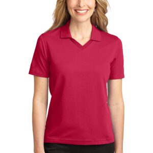 Soft and breathable, this baby pique polo has our exclusive Rapid Dry ™ moisture-wicking technology. This unique knit has a soft inner layer which wicks moisture away from your skin to the shirt’s surface where it quickly disperses and evaporates. | 5.6-ounce, 60/40 cotton/poly Double-needle stitching throughout V-neck collar with crossover flat knit trim Open hem sleeves Side vents
