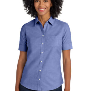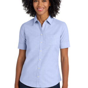 Look your best in a tried-and-true oxford that performs. Designed to release stains, our wrinkle-resistant SuperPro Oxford has a soft hand to keep you looking neat and professional all day long. | 4.6-ounce, 60/40 cotton/poly Open collar Bust darts Back shoulder pleats Pearlized buttons Left chest pocket Two-button cuffs Rental-friendly