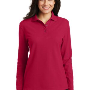 A favorite for years, our Silk Touch™ polo is soft, supple and easy to care for. The silky smooth pique knit resists wrinkles while the classic long sleeve style looks great on everyone. | 5-ounce, 65/35 poly/cotton pique Flat knit collar Double-needle armhole seams and hem 3-button reverse placket Metal buttons with dyed-to-match plastic rims Open hem sleeves Side vents